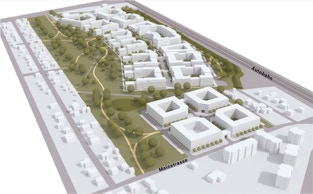 Schule mit Turnhalle, Kita, Gewerbe,